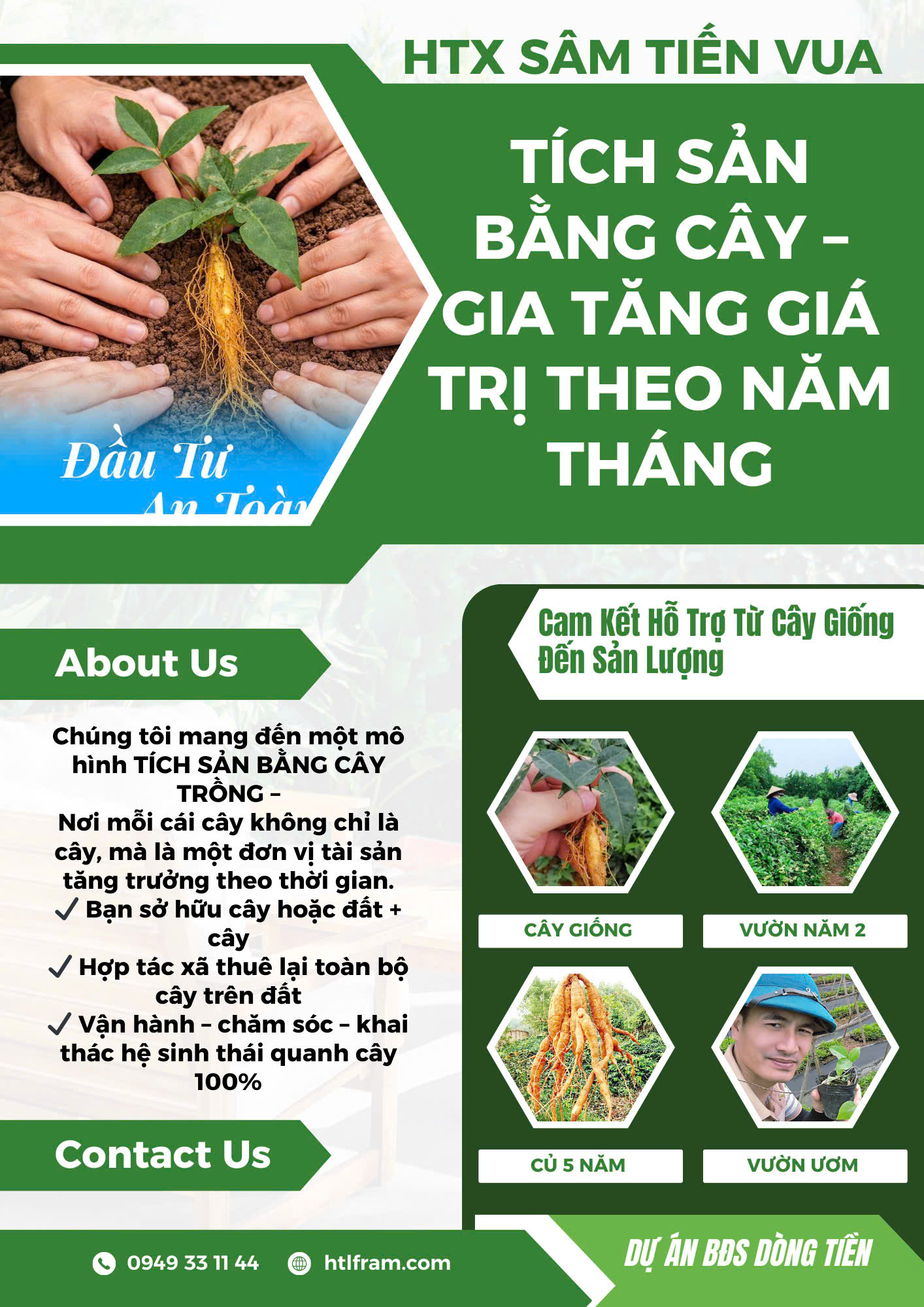 Là doanh nghiệp tiên phong trong lĩnh vực phát triển, phân phối và ứng dụng công nghệ xanh vào nông nghiệp bền vững, đặc biệt là trồng và thương mại hóa cây Sâm Núi Dành – loại cây được mệnh danh là “Sâm tiến vua”. Với tầm nhìn “Xanh hóa tương lai – Lan tỏa giá trị bền vững”, Cty CP TMDV HTL không chỉ cung cấp giống cây chất lượng cao, mà còn phát triển chuỗi giá trị khép kín từ trồng trọt, chế biến đến phân phối các sản phẩm từ Sâm Tiến Vua. Chúng tôi cam kết mang đến sản phẩm tự nhiên, giá trị kinh tế cao, thân thiện với môi trường, góp phần thúc đẩy nông nghiệp công nghệ cao và phát triển xanh tại Việt Nam cũng như thị trường quốc tế.